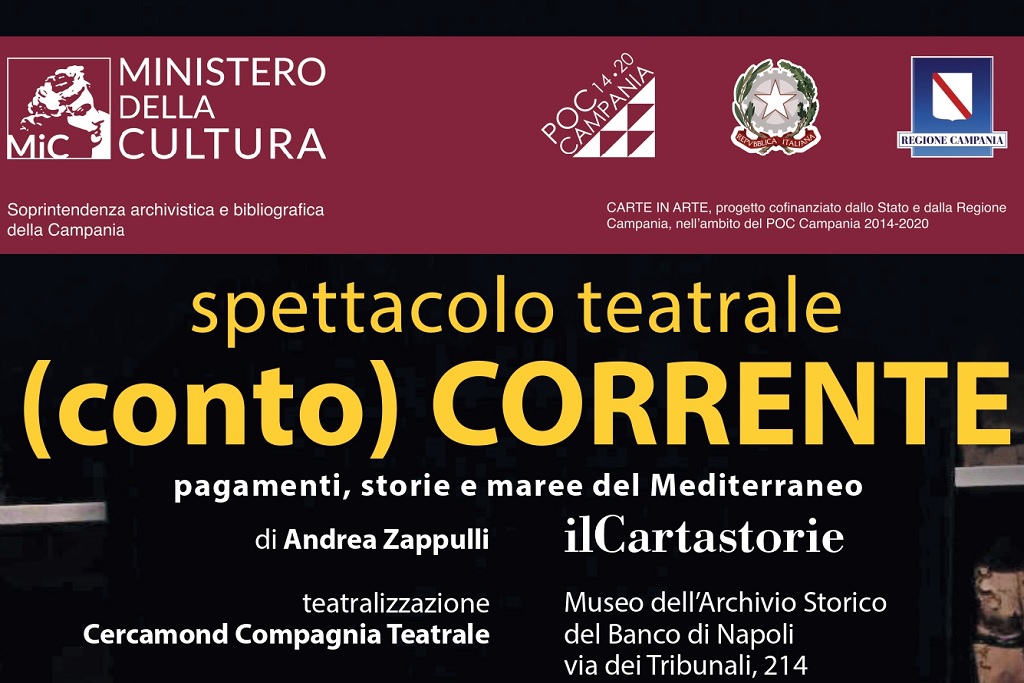 In scena “(Conto)Corrente: pagamenti, storie e maree del Mediterraneo”, testo di Andrea Zappulli ispirato alle scritture dell’Archivio Storico del Banco di Napoli, da poco divenute, per la loro rilevanza, patrimonio UNESCO.