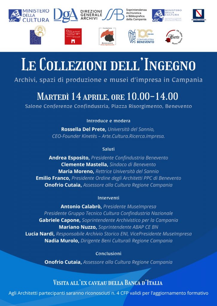 L’impresa culturale e creativa Kinetès-Arte.Cultura.Ricerca.Impresa, in collaborazione con Confindustria Benevento, intende promuovere il patrimonio culturale e identitario del territorio attraverso un ampio confronto sul tema della cultura d’impresa tra identità, innovazione e comunicazione.