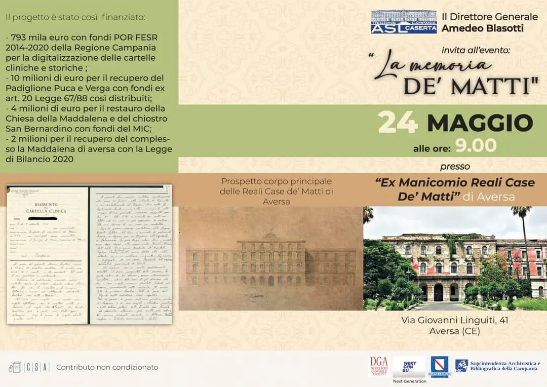 E’ stato presentato venerdì 24 maggio, presso la sede dell’ex Ospedale psichiatrico di Aversa, già Reali Case de’ Matti, l’intervento di recupero della documentazione archivistica, costituita da oltre 30.000 cartelle cliniche.